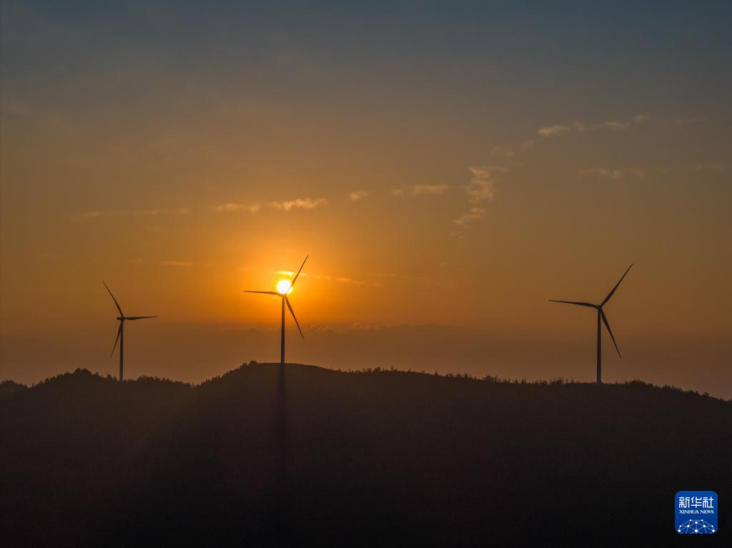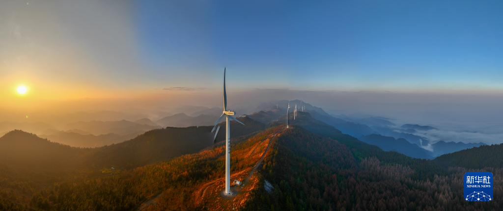 这是1月10日在千野草场景区拍摄的风力发电机组(无人机全景照片)。