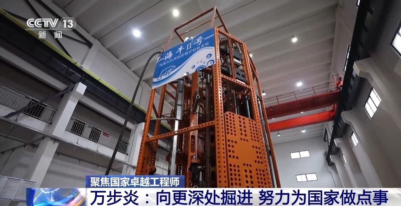 2015年,万步炎科研团队研发的“海牛号”取得成功,改写了我国深海海底钻机的钻探纪录。2021年,万步炎带着他们研发的“海牛Ⅱ号”向着2000米的深海进发。在抵达2060米的海底后,时年57岁的万步炎自己操控钻机20多个小时,钻机的钻探深度最终停留在231米,创造了当时海底钻机钻探深度新的世界纪录。除了钻得深,“海牛Ⅱ号”还带回来了珍贵的可燃冰,这不仅填补了我国钻深大于100米、具备保压取芯功能的深海海底钻机装备的空白,也刷新了世界深海海底钻机的钻深纪录,意味着我国在理论上具备了海洋矿产资源全覆盖的勘探能力,为我国加快建设海洋强国、实现高水平科技自立自强作出了突出贡献。