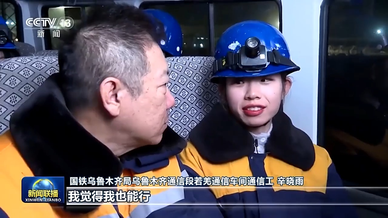 国铁乌鲁木齐局乌鲁木齐通信段若羌通信车间通信工辛晓雨:开始来的时候也哭过鼻子,但是他们都非常照顾我,我看到男孩子能行,我觉得我也能行。