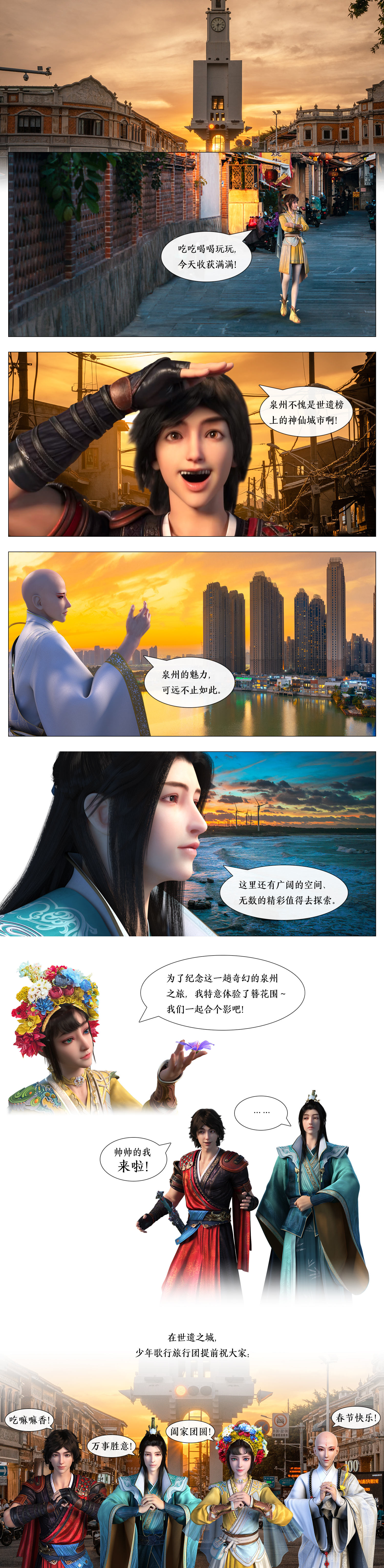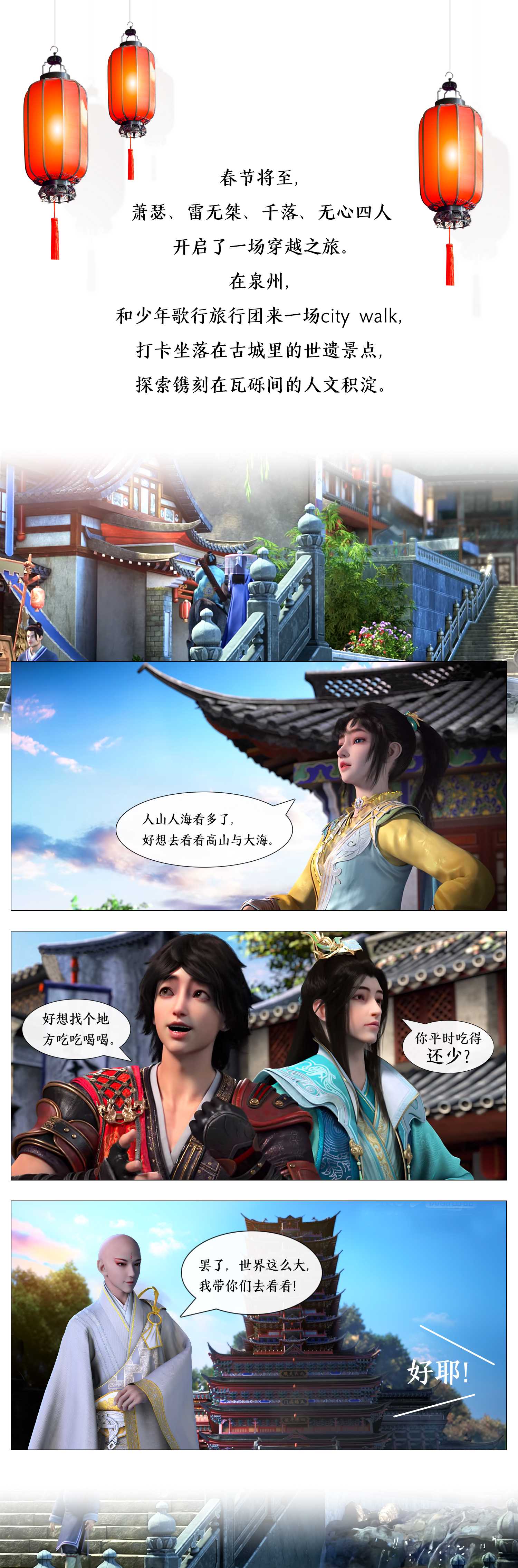 春节将至,萧瑟、雷无桀、千落、无心四人穿越到古城泉州,在红砖古厝、长街小巷里来一场city walk。慢行其间,品世遗文化、听南音袅袅、尝地道美食、戴浪漫簪花……跟着少年歌行旅行团,一起打卡温润刺桐城↓↓↓