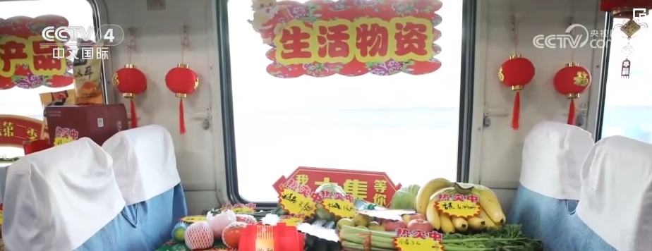 在黑龙江齐齐哈尔,开往加格达奇的4045次列车上,“年货大集”也正式开张,共开设生活物资、民俗文化、乡村企业等八个货区。