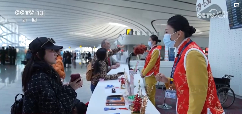 2月9日,超过13万名旅客通过北京大兴机场乘飞机旅行或回家过年。为了给乘客的旅途增一丝暖意,添一分平安,大兴机场年轻的服务大使们,在岗位上默默奉献着。