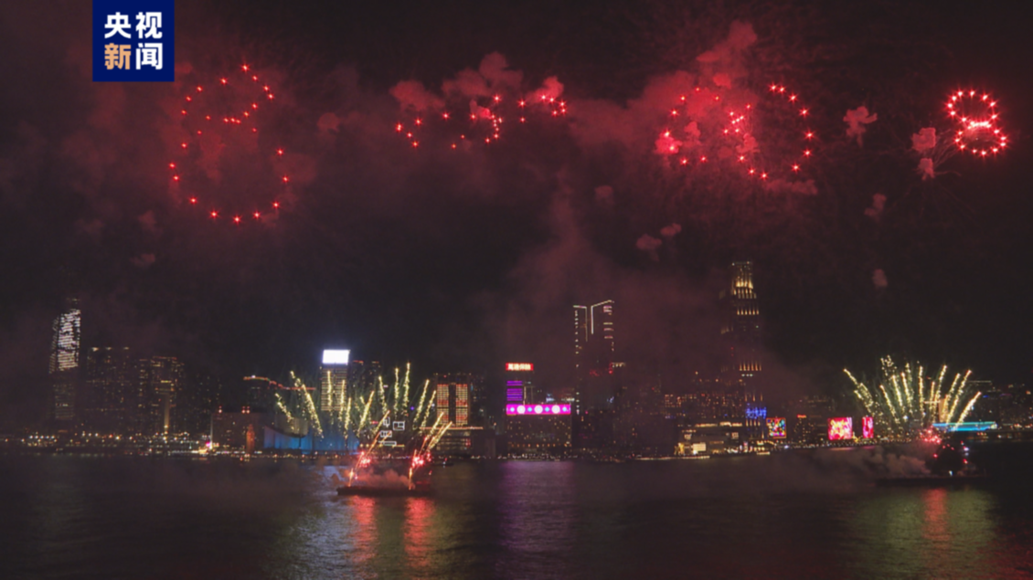 2月11日(大年初二)20时,香港农历新年烟花汇演在维多利亚港上空上演。绚烂多彩的烟花照亮夜空,为节日的香港增加了许多欢乐喜庆的气氛。