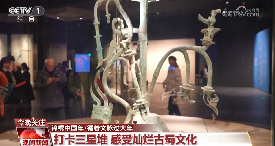 在三星堆博物馆展馆内,各种龙形文物琳琅满目。其中,青铜神树更是备受游客们的瞩目。这座神树由底座、树和龙三个部分组成,其中一条游龙缘树盘绕而下,龙身有刀状的羽翼。此外,三星堆新一轮考古发掘的龟背形网格状青铜器、青铜神坛、虎头龙身青铜像、猪鼻龙等各种各样附带龙元素的文物,让游客们驻足观赏。