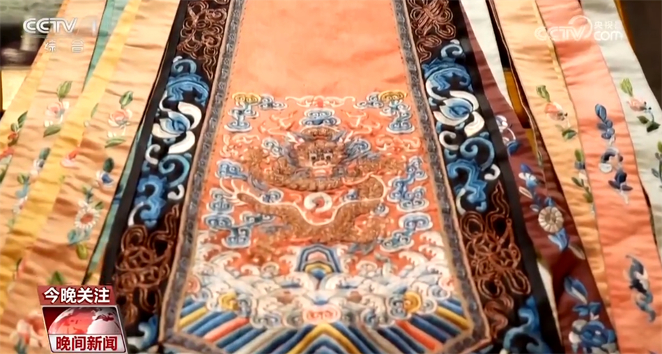 服装设计师林栖:特别是前期的时候,(马面裙)它的龙头特别大,龙的头可能占到整个龙纹的三分之二左右,它体现的是威严的感觉。后期的时候,整个身体的塑形感以及头的比例是缩(小)的,整个图形是一种气宇昂扬的状态,非常有生命力,这种积极的状态。