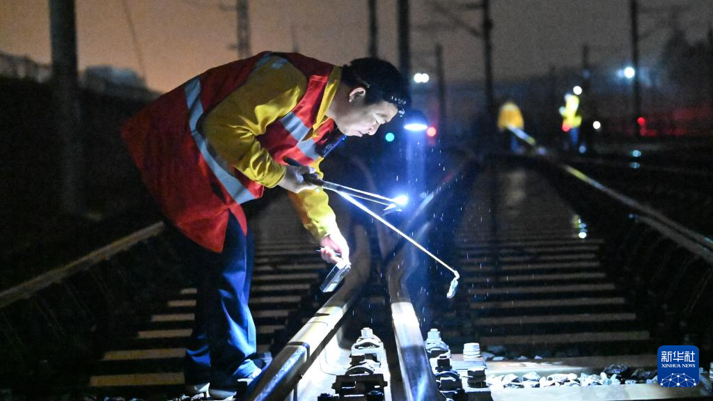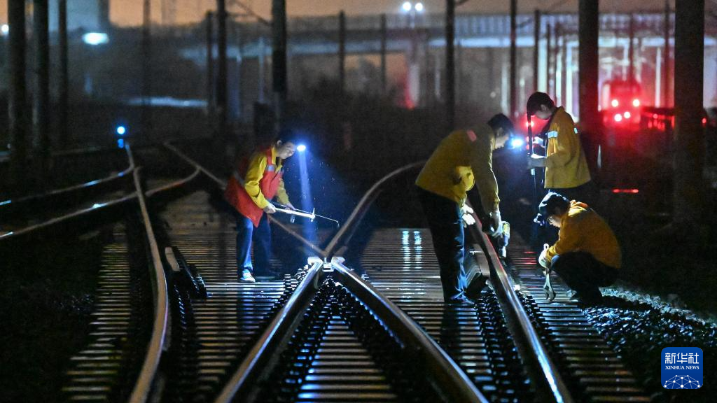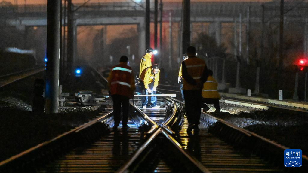连日来,中国铁路南宁局集团有限公司钦州工务段的工人们利用凌晨“天窗”时间,检修铁轨,排除隐患,为春运保驾护航。