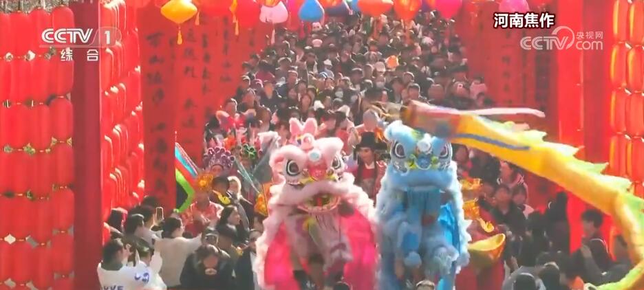 在河南焦作云台山景区,舞龙舞狮吸引现场游客参与其中,川剧变脸、梨园战鼓等各类民俗表演以及汉服巡游活动热闹非凡。