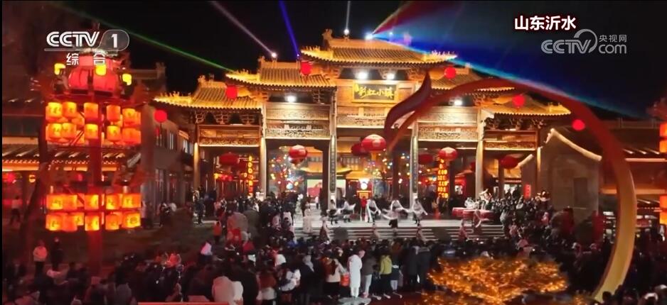 在山东沂水,穿越云端的烟花秀点亮了沂水彩虹不夜城的天空,喧天的锣鼓、欢腾的舞龙、热闹的气氛搭配着“有凤来仪”“盛彩敦煌”等随处可见的国潮盛景,仿佛让人穿越千年。