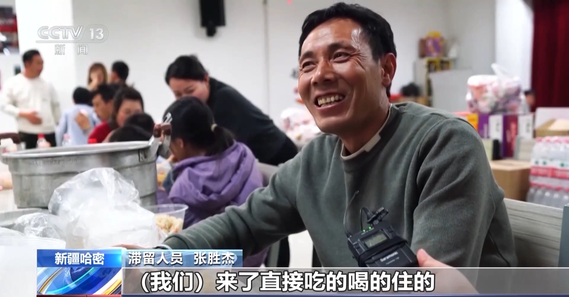 滞留人员张胜杰:我们开车按导航到这里来的,我们来了直接吃的喝的住的全部给我们安排好了。