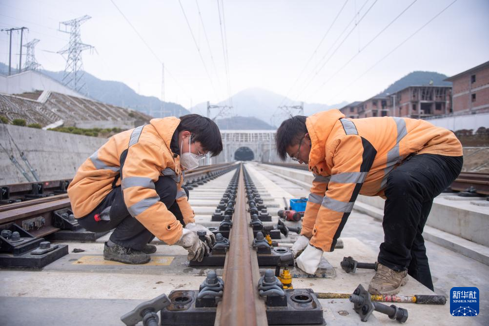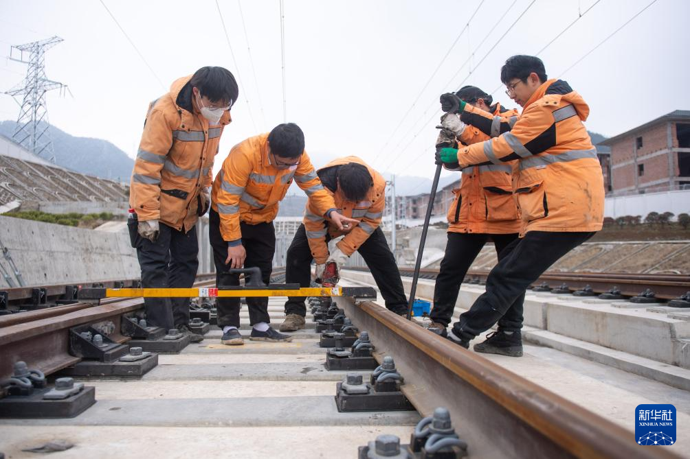 2月27日,铁路宁波工务段职工对杭温铁路轨道进行精调作业。