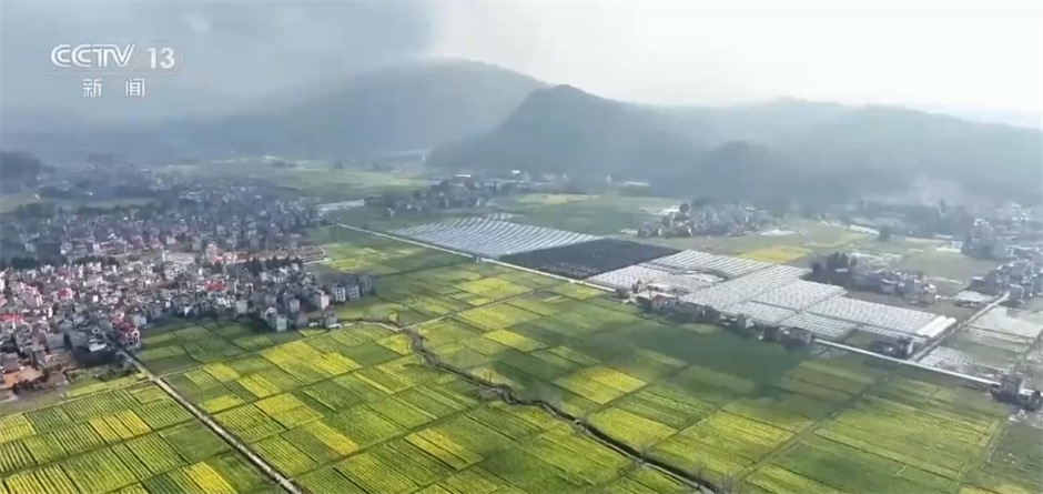 在江西婺源,广袤的田野上金灿灿的油菜花悄然盛开,与白墙黛瓦的村落相映成趣,构成一幅秀美的春日画卷,不少游客慕名来此踏青赏花、亲近自然。