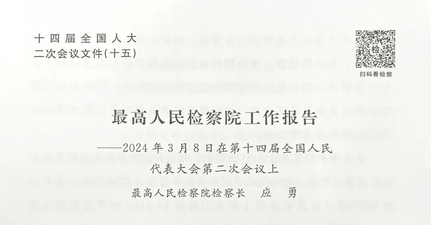 3月8日上午,最高人民检察院检察长应勇在十四届全国人大二次会议上作最高检工作报告。报告的右上角,有这样一个二维码。拿起手机扫一扫,抢“鲜”看报告内容↓