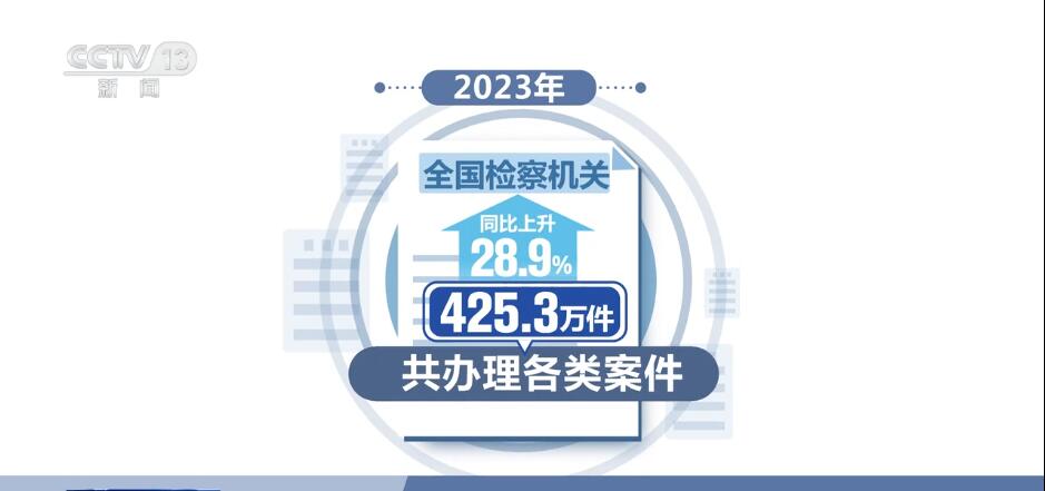 2023年,全国检察机关共办理各类案件425.3万件,同比上升28.9%。