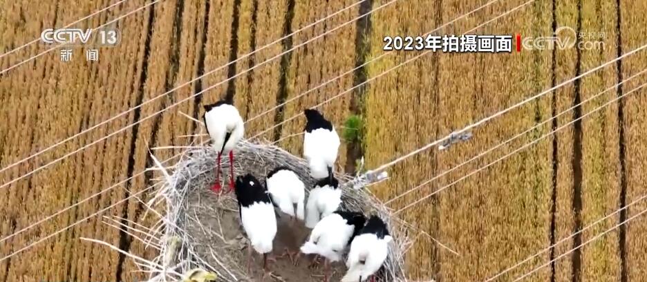 由于东方白鹳筑巢繁殖的位置位于输电铁塔顶端,为了给它们营造一个安全舒适的生活环境,当地还成立了爱鸟志愿服务队,守护人类共同的朋友。