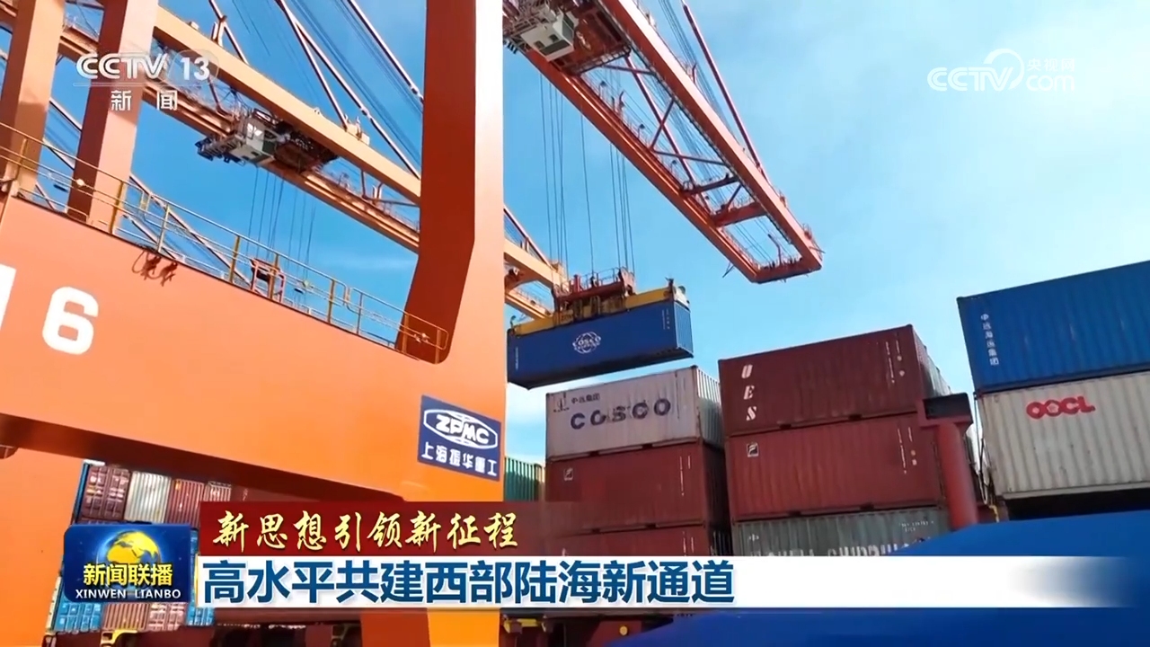 央视网消息(新闻联播):加快建设西部陆海新通道,是党的二十大提出的重大战略任务。习近平总书记要求,要高水平共建西部陆海新通道。牢记总书记嘱托,沿线各地不断创新运营组织模式,推进基础设施建设,推动高水平开放、高质量发展。如今,在我国广袤的西部地区,一条全新的国际物流大通道正加速延伸,跨越山海、联结世界。