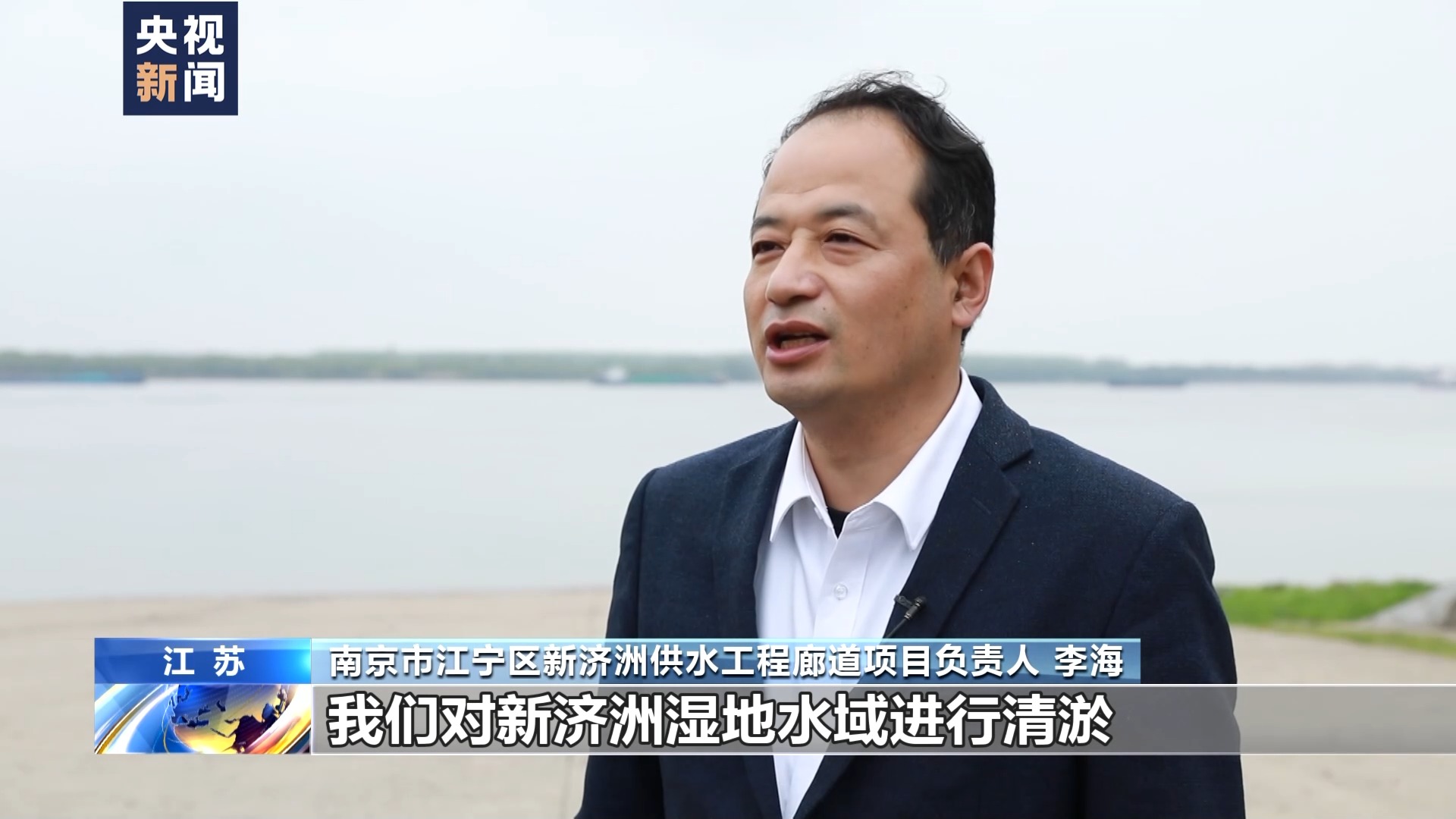 南京市江宁区新济洲供水工程廊道项目负责人李海:我们对新济洲湿地水域进行清淤、疏浚、扩容,新建跨江廊道,项目采用全程智能化控制系统装置、精密的水位调节系统,有效增强湿地水体的流动和自净能力,能更好保护好湿地生态。
