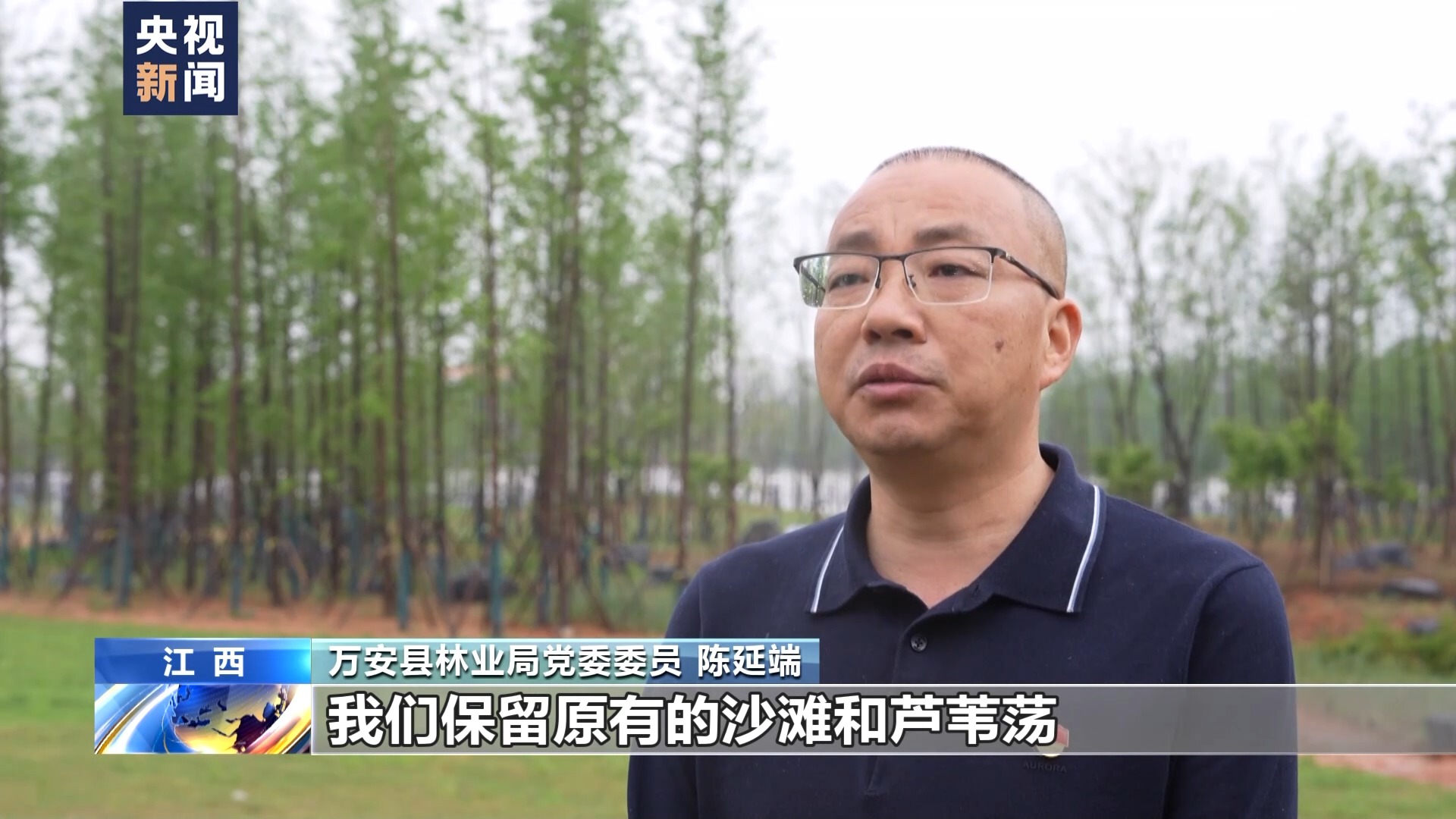 万安县林业局党委委员陈延端:我们保留原有沙滩和芦苇荡,在浅滩上种植水杉、芦苇等水生植物,净化水质,保护和修复湿地生态。
