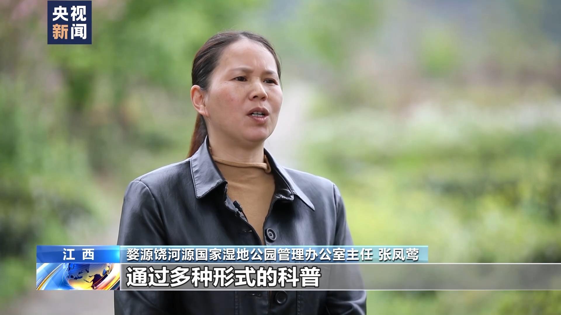 江西婺源饶河源国家湿地公园管理办公室主任张凤莺:我们设立了研学基地、蓝冠噪鹛科普馆,通过多种形式的科普,让大家在爱鸟护鸟、科学观鸟的同时,共同参与到湿地保护中来。