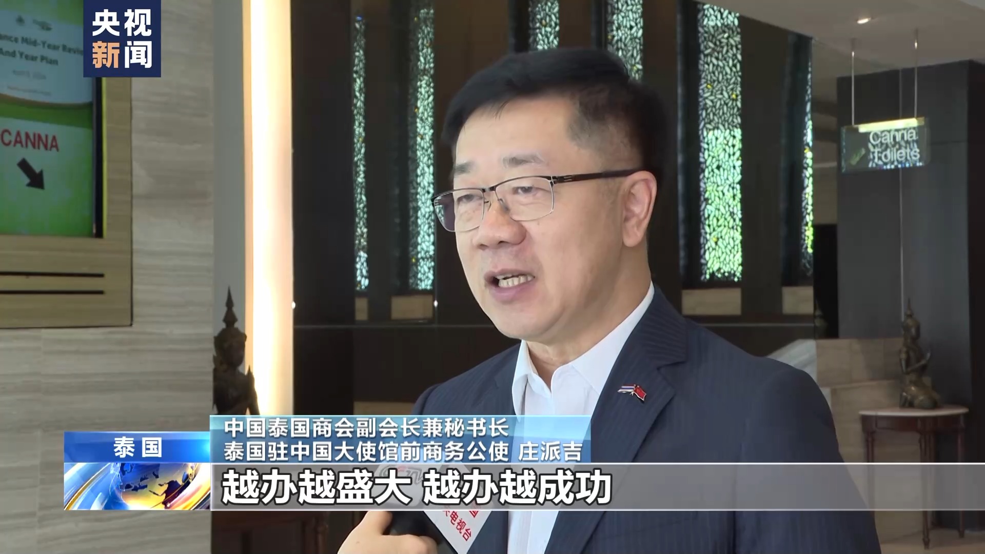 中国泰国商会副会长兼秘书长、泰国驻中国大使馆前商务公使庄派吉多年来一直致力于推动中泰经贸往来。他表示,消博会这些年来持续发展壮大,展会的内容也不断创新,受到越来越多国际参展商以及消费者的青睐。