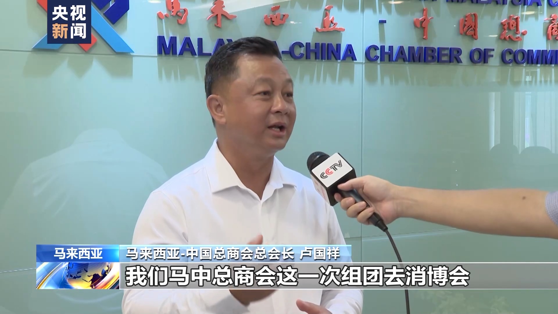 马来西亚-中国总商会总会长卢国祥:我们马中总商会这一次组团去消博会,总共有16家企业参与。这16家企业的参与主要是以食品为主的,所以提到这个展览,带给我们非常巨大的潜力,将会吸引更多的企业走进中国、了解中国、拥抱中国,从而实现共同的发展。
