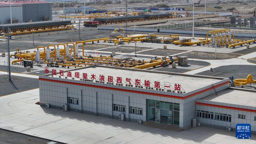 这是2023年8月20日拍摄的中国石油塔里木油田公司西气东输第一站(无人机照片)。新华社记者 王鹏 摄