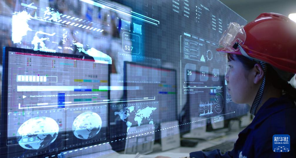在中国(广西)自由贸易试验区钦州港片区,一家新能源电池材料企业员工在监控自动化车间作业(2023年11月29日摄)。新华社记者张爱林 摄