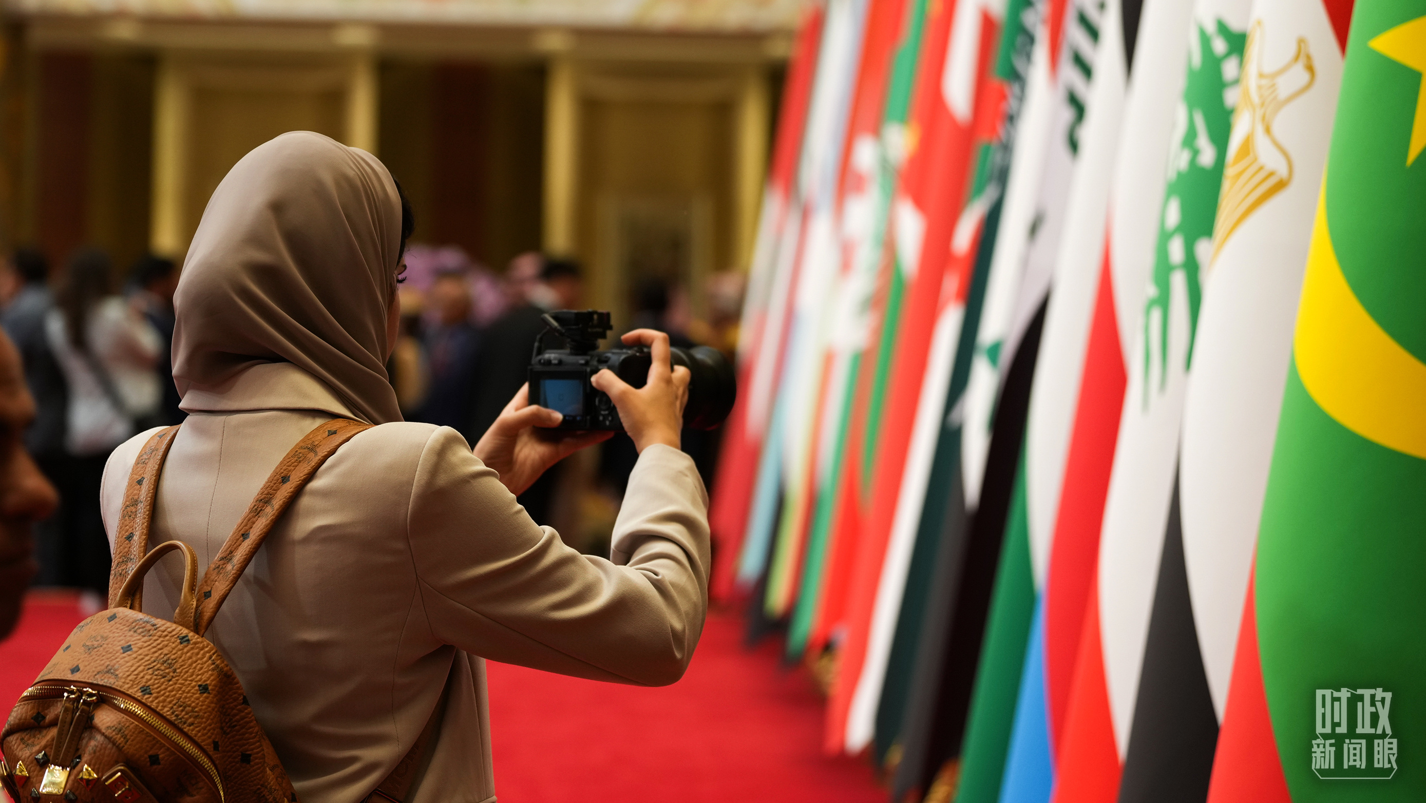 △外国媒体拍摄现场旗阵。(总台国广记者李晋拍摄)