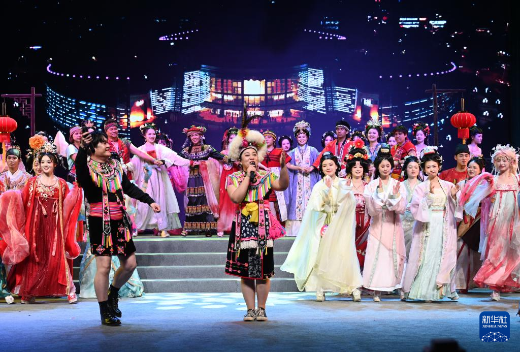 6月1日,两岸青年在第七届海峡汉服文化节开幕式上表演歌舞。