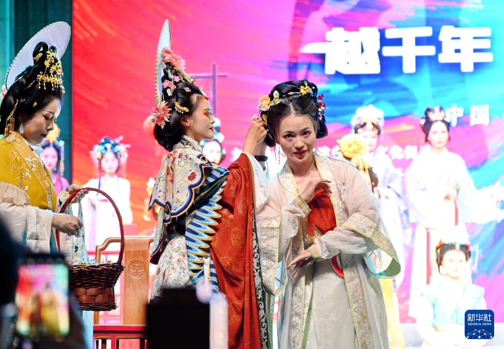 6月1日,演员在第七届海峡汉服文化节开幕式上展示服饰。
