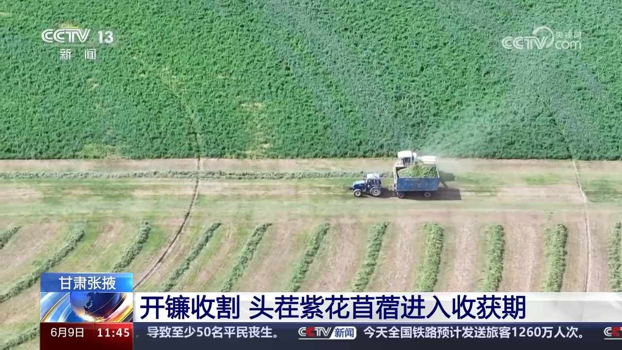 甘肃张掖:开镰收割 头茬紫花苜蓿进入收获期