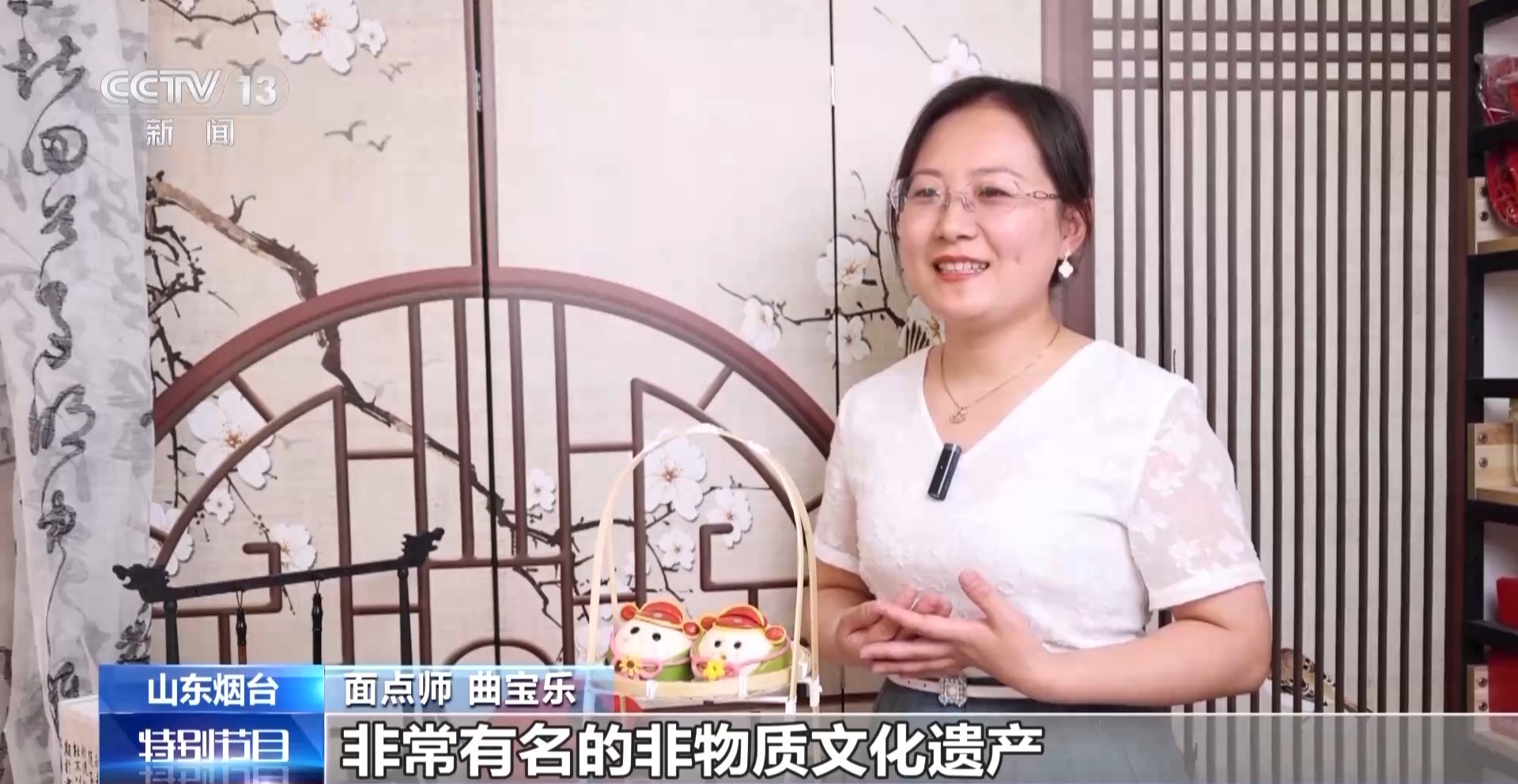 面点师曲宝乐:胶东面塑是我们当地有名的非物质文化遗产,很多重要的节日,我们都会通过制作面塑来增添节日氛围。