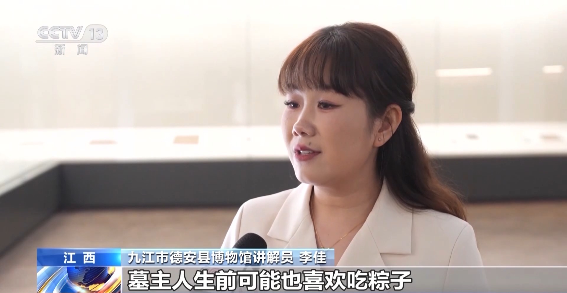 江西省九江市德安县博物馆讲解员李佳:墓主人生前可能也喜欢吃粽子,所以把粽子带到棺木当中去。在古时候其实棺木当中放粽子,它也是有表达哀悼的一个意思,并且粽子是成双成对的,也有一种美好的寓意。