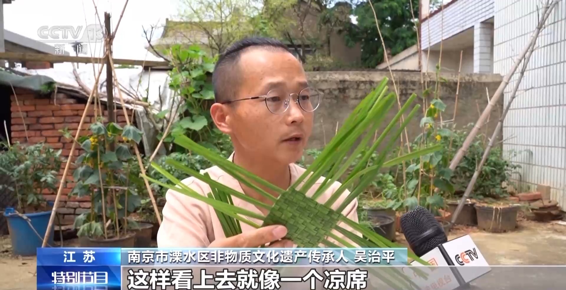 江苏省南京市溧水区非物质文化遗产传承人吴治平:很重要的两个技法就是一挂一穿,看上去就像一个凉席。它是双层的,里面是空心的。