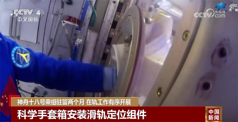 近期,乘组为科学手套箱安装了滑轨定位组件。科学手套箱能够为开展空间科学实验提供密闭洁净的操作空间,航天员可以利用它完成各类实验的精细操作。