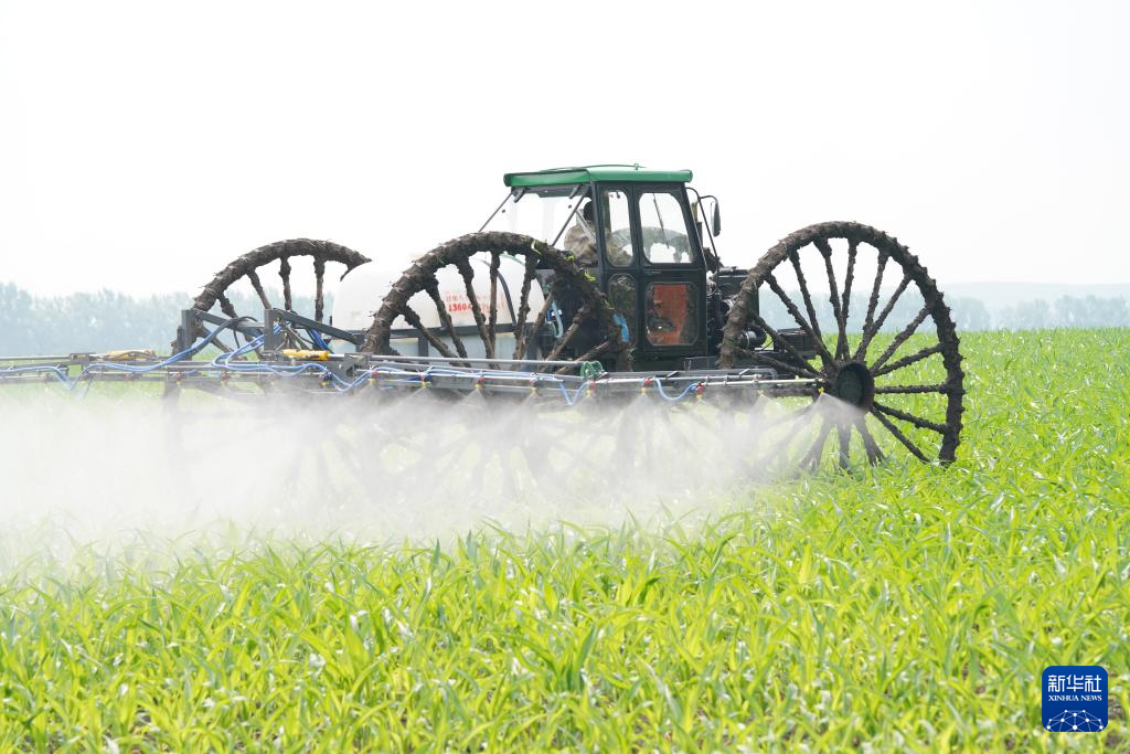 7月3日,在北大荒农业股份有限公司友谊分公司第二管理区一玉米地块,大机械在进行作业。