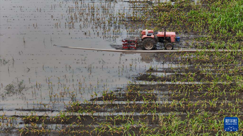 7月3日,北大荒农业股份有限公司友谊分公司第三管理区在抢排积水(无人机照片)。