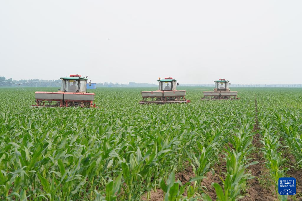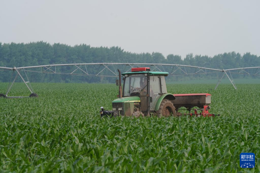 7月3日,在北大荒农业股份有限公司友谊分公司第二管理区一玉米地块,大机械在作业。
