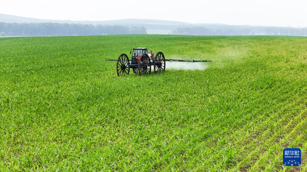 7月3日,在北大荒农业股份有限公司友谊分公司第三管理区一旱田地块,机械设备在进行除草作业。