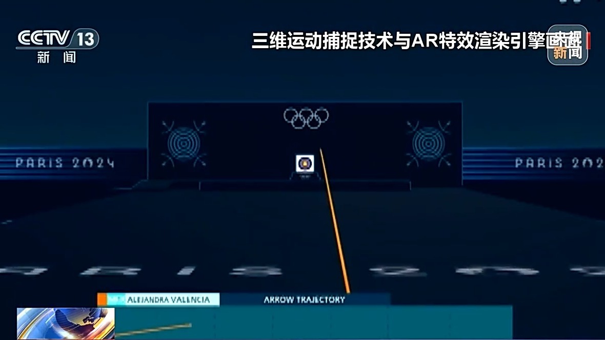 奥运赛事转播方技术人员林奕廷:我们过去实际上在转播过程当中,射箭就关注一个起点和终点,射箭发出之后就马上就中靶,其实时间是非常快的。所以在转播语言当中过程这个轨迹其实是缺失的。我们通过虚拟场景把箭矢的轨迹去还原出来,让这个过程呈现到观众的视野当中。在讲解的过程当中,也可以基于这样的轨迹去评估。像射箭选手的稳定性,包括对环境的变化是如何去做应对的,对于转播更加有故事性,数据上也更加多元化。