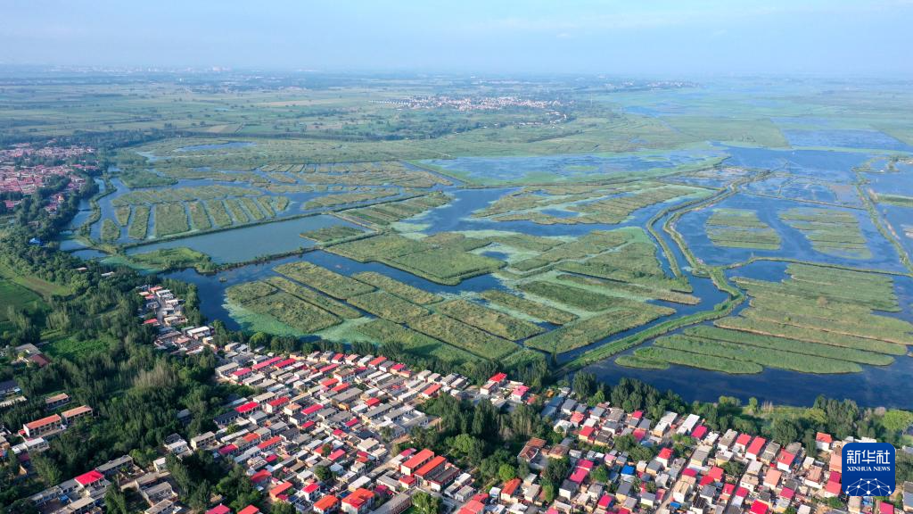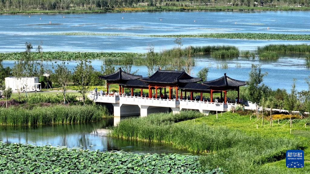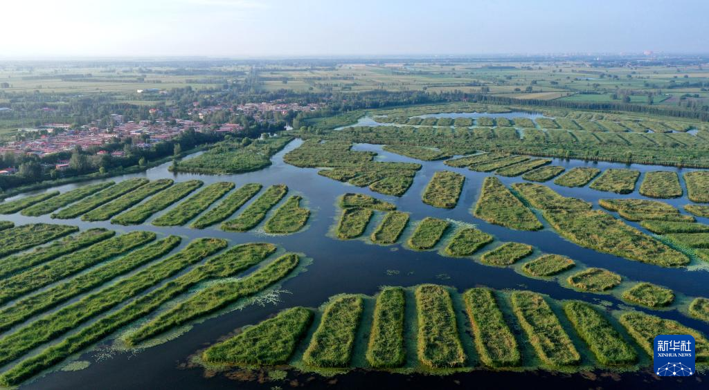 8月13日拍摄的雄安新区白洋淀唐河入淀口湿地(无人机照片)。