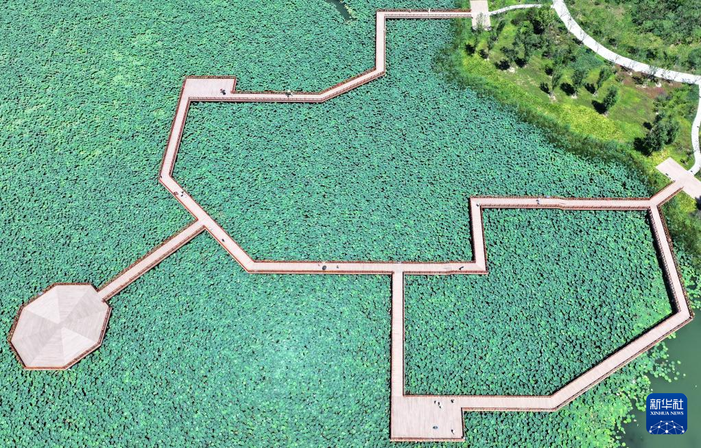 8月13日拍摄的雄安新区白洋淀燕南堤区域一角(无人机照片)。