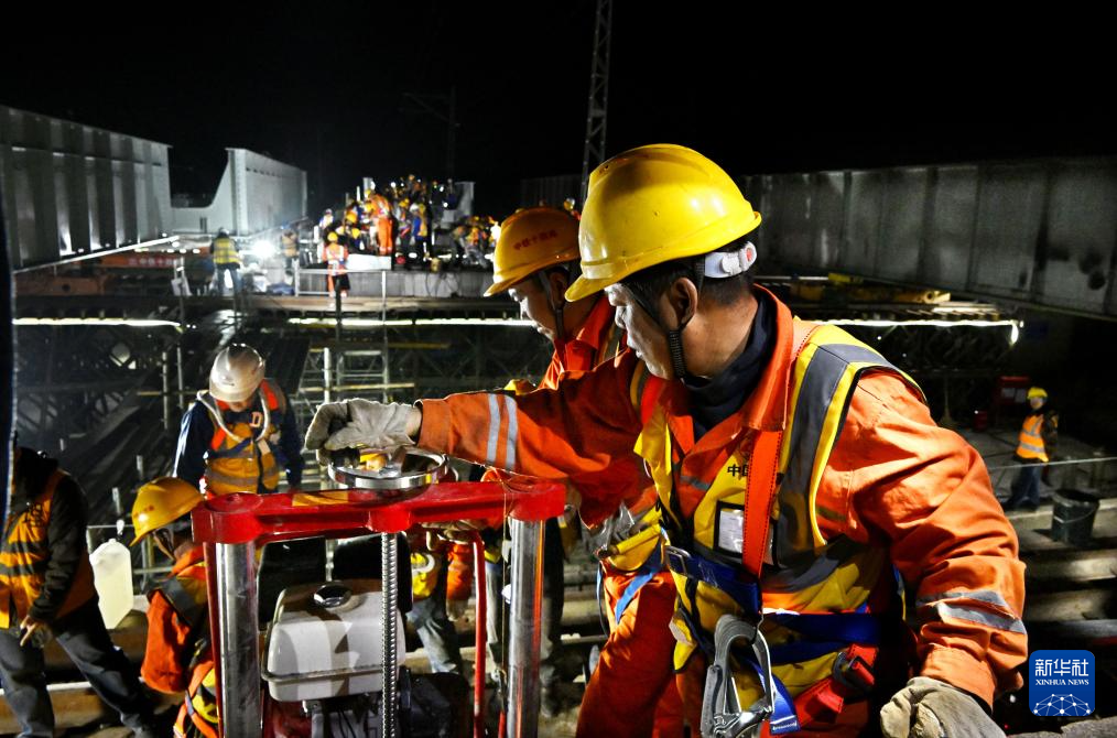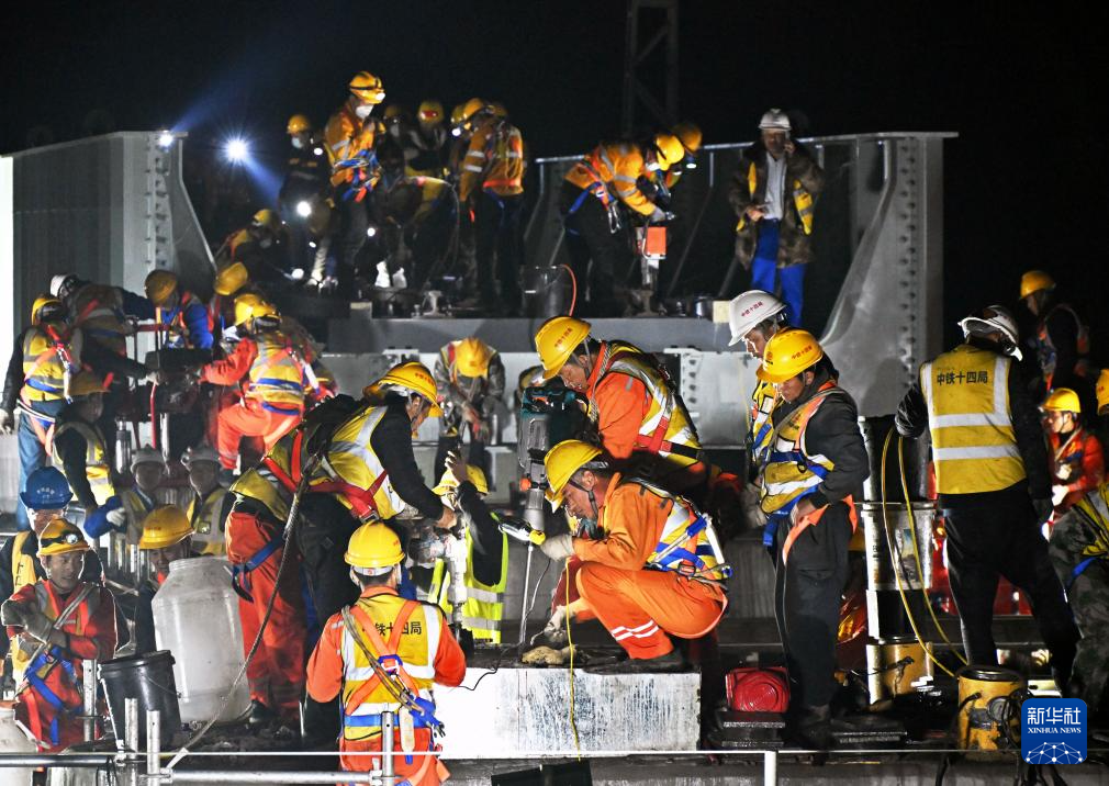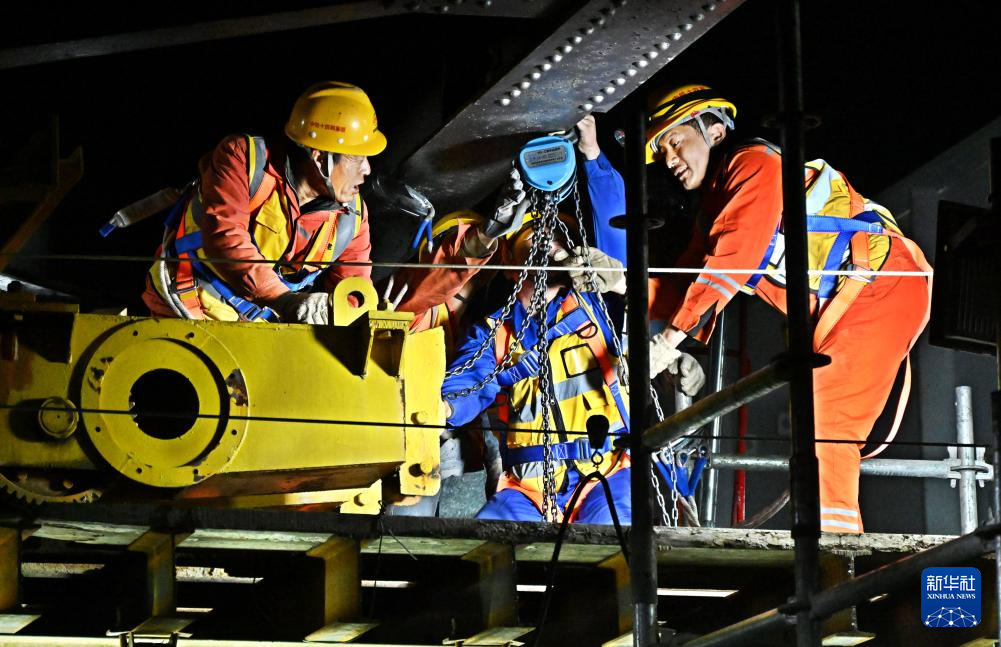 11月15日,中铁十四局施工人员在换梁现场作业。