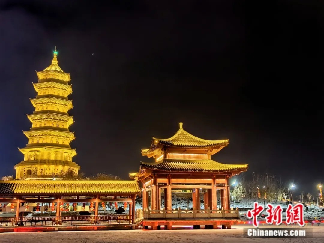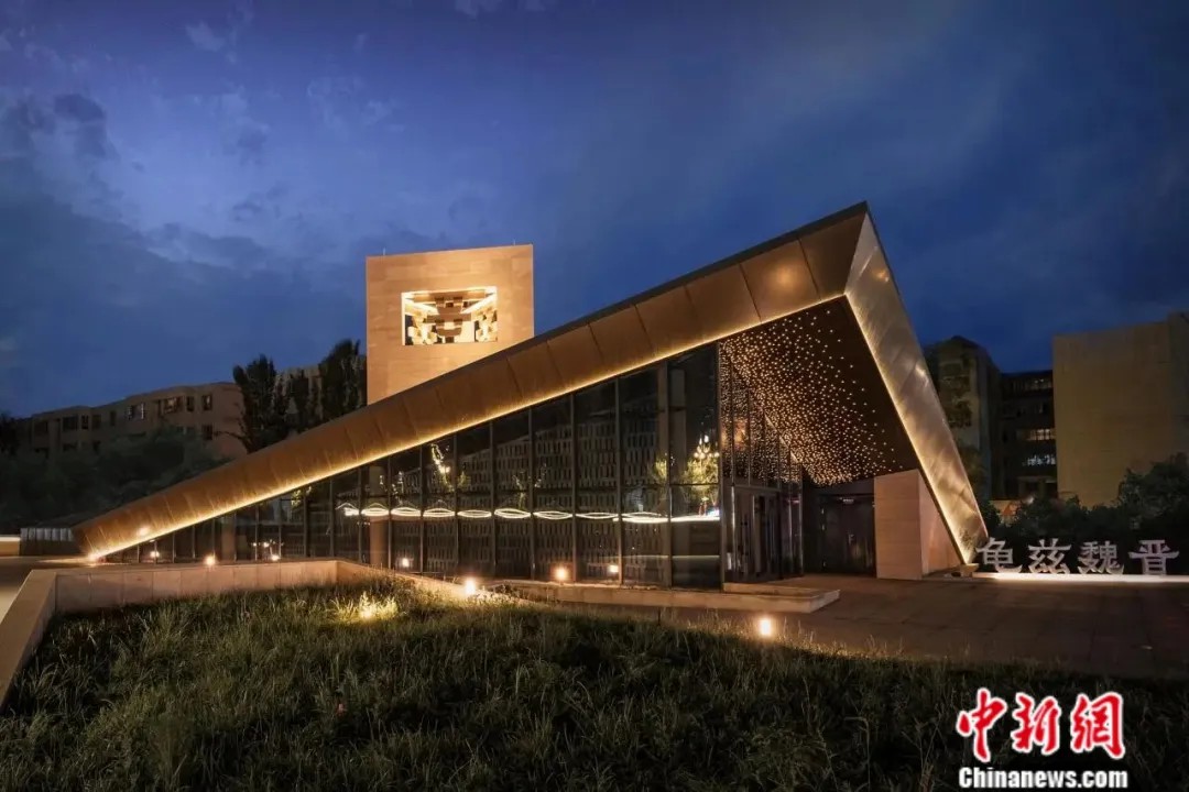 夜幕下,龟兹魏晋遗址博物馆一角。库车市融媒体中心提供