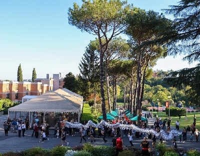 青岛老龙湾海域,市民和游客乘船参加海上巡游活动(7月10日摄,无人机照片)。