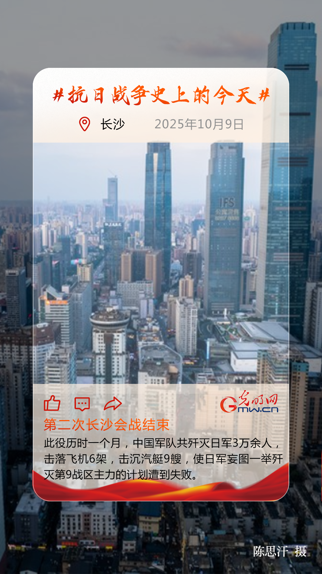 【抗日战争史上的今天】10月9日:第二次长沙会战结束