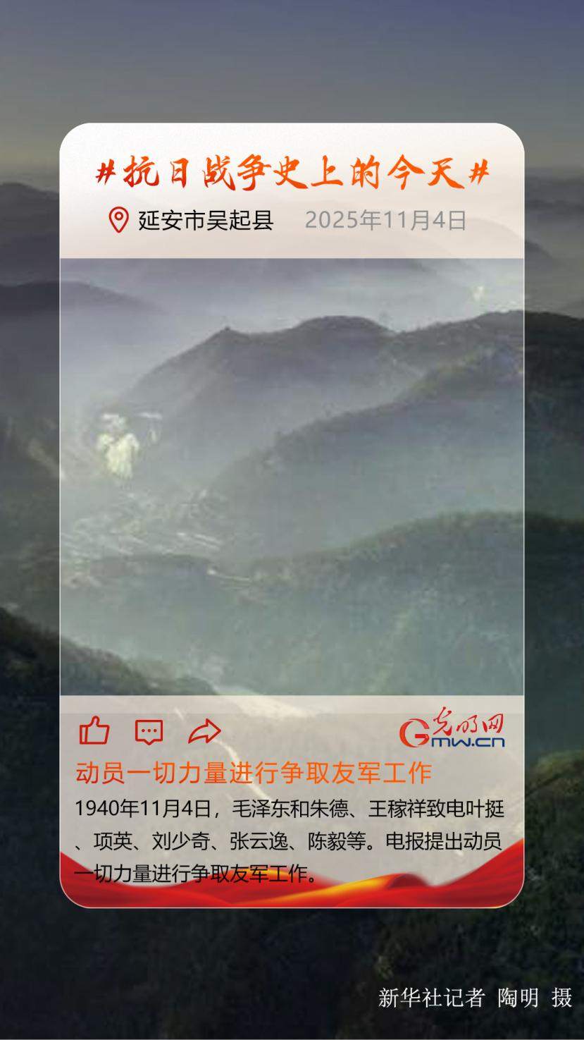 1940年11月4日,毛泽东和朱德、王稼祥致电叶挺、项英、刘少奇、张云逸、陈毅等。电报提出动员一切力量进行争取友军工作,指出:根据华北、陕甘宁边区和苏北黄桥等反磨擦战斗的经验,在反磨擦的武装斗争中,加紧争取友军对我同情或严守中立的工作,不但有很大的意义,而且有很大的可能。因此,立即动员一切可能的党政军民力量去进行争取友军工作,成为你们今天最中心任务之一。根据各方面经验,“抗战到底,团结到底”、“大敌当前,中国人不打中国人,中国军队不打中国军队”、“一切中国的同胞、中国友军联合起来抗日救国”、“反对内战,反对中国人自相残杀”等口号,仍是思想上瓦解反共军队和争取友军对我同情的有力武器。