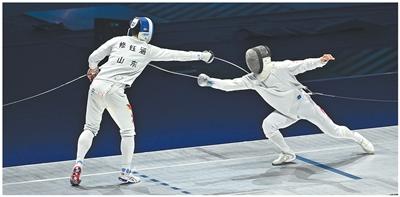 运动员在十五运会击剑项目男子重剑个人决赛中。本报记者 王 亮摄