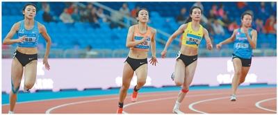 浙江队选手陈妤颉(左二)在十五运会田径项目女子200米预赛中。本报记者 陶相安摄