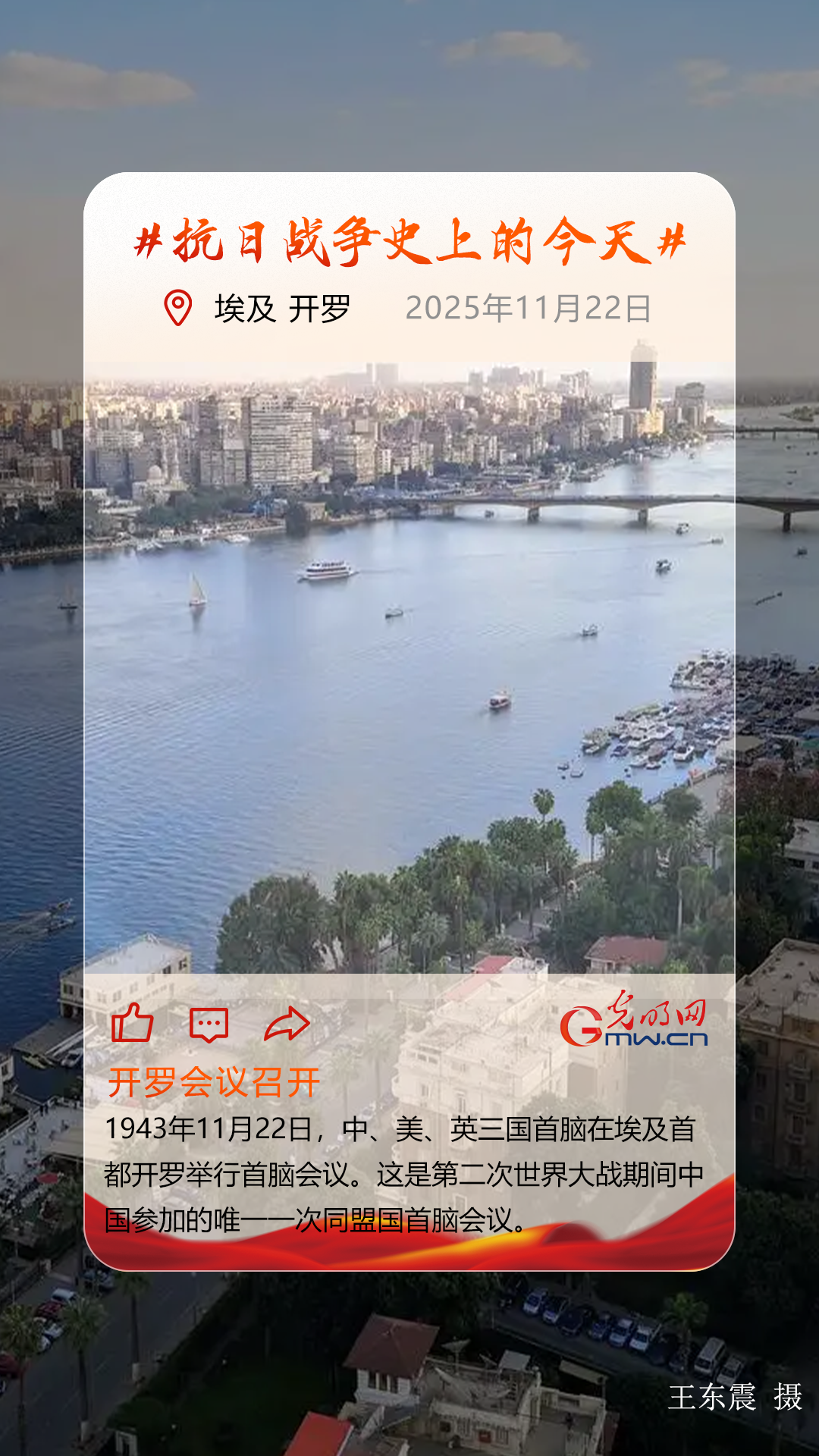 为进一步加强同盟国的合作,协调彼此间的军事行动,推动反法西斯战争早日结束,中、美、英三国首脑于1943年11月22日举行开罗会议。