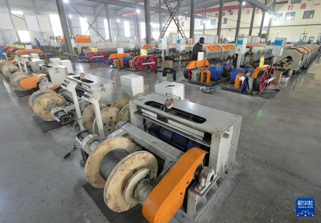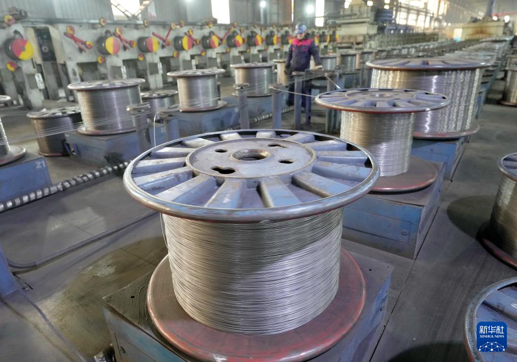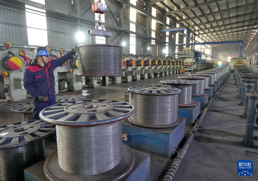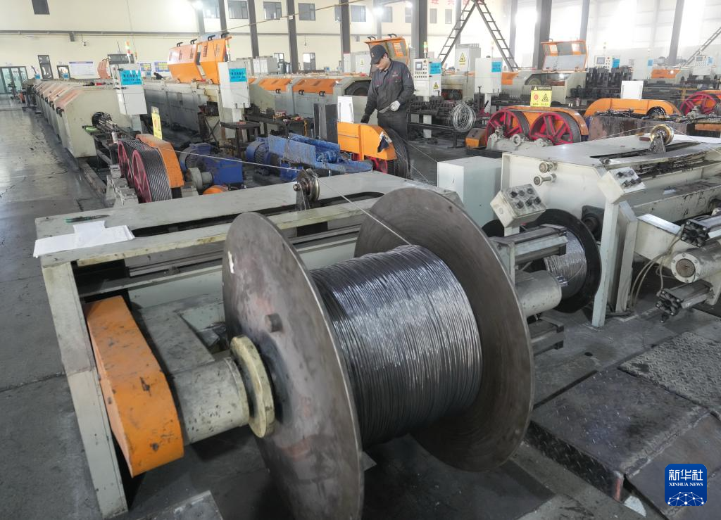 12月23日,工人在河北省迁安市河北航纽特钢有限责任公司钢丝绳生产线上工作。